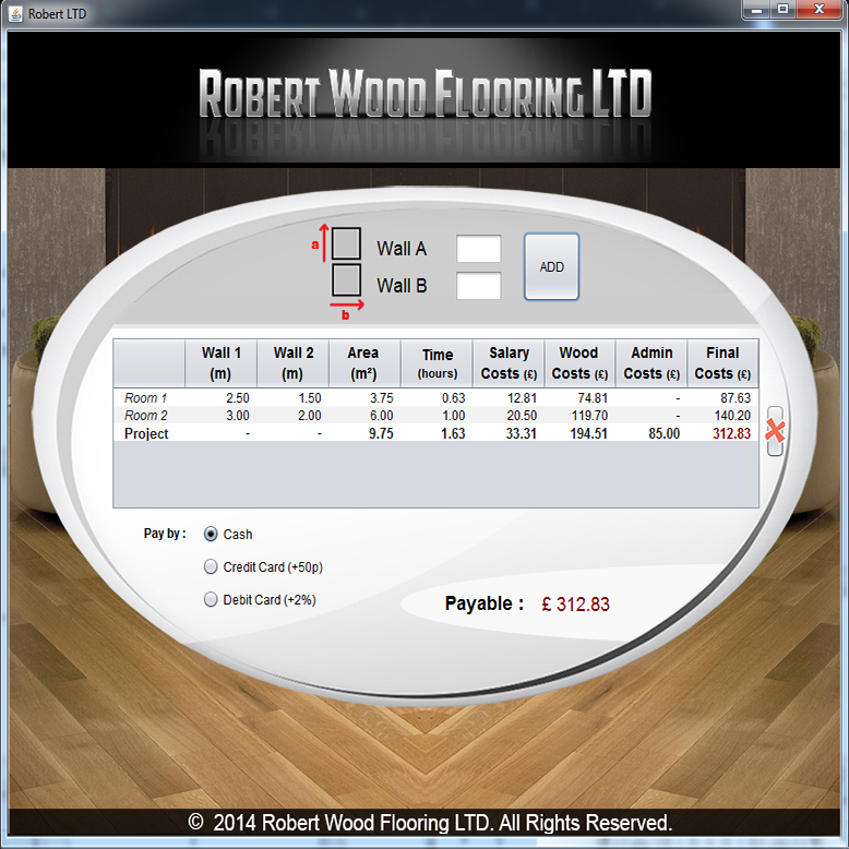 A baby level Java application... only included it because I didn't want to leave this space blank :) Calculates the area, time required, the costs of each room, and the costs of the entire project.